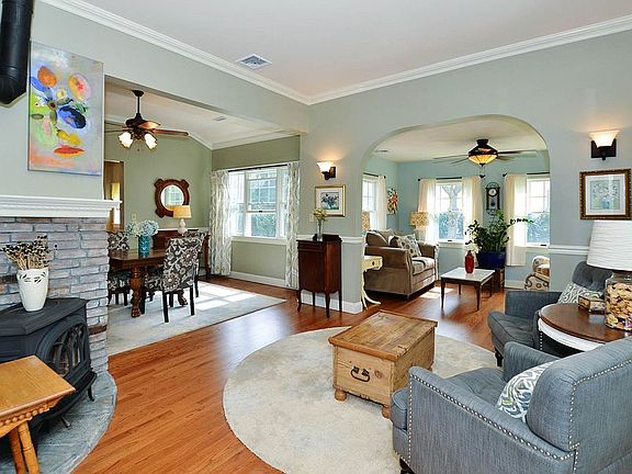 Lovely Victorian Style Colonial W/ High Ceilings And Loads Of Updates! Front Porch, Open Floor Plan, Updated Kitchen W/ Granite & Stainless Steel Appliances. Four Full Updated Baths, 4/5 Bedrooms Incl Large Master Suite W/ Dual Gas Fireplace To Master Bath & Upstairs Deck. Gas Heat, Crown Moldings, Central Air, Radiant Heat Upst Baths, Cedar Exterior, Wood Floors & More!