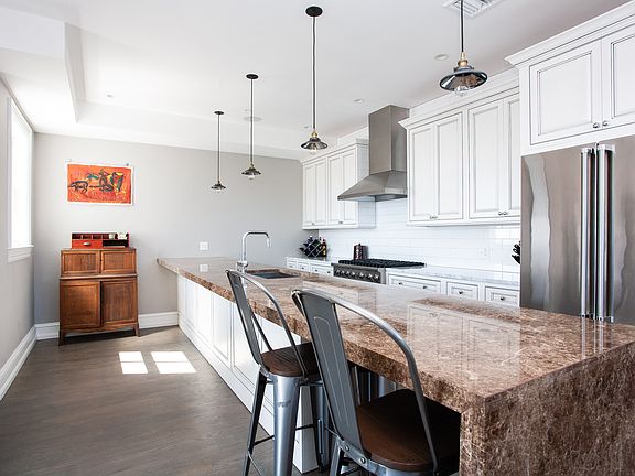Stunning views, abundance of natural light, and luxury living are just a few phrases to describe this 4 bed 2.5 bath condo perfectly perched atop Thomas Park. 1900+ square feet spread generously among two floors of living. The kitchen provides an ideal layout for cooking while still entertaining your guests. Plenty of space to enjoy your meal at the oversized countertop, dining table, or relaxing in the sun off the living room deck. The space really allows you to layout your living/dining area however you wish. Also on this floor are three bedrooms, as well as one and a 1/2 baths, and plenty of closet space. No detail was left unfinished. Open up the bathroom closets and be amazed at the organization options. Just a few steps up to the second level and you reach the master bed and bath. If the linen closet is not enough, make sure you open up the vanity draws. There is space for everything, no need to have clutter on your counters! The master bedroom has 5 windows letting in a bright stream of sunlight and the master closet is custom with a safe & built in ironing board. Just outside the master bedroom is the sunroom with wet bar and double doors leading out to what could arguably be called the best roof deck in South Boston! The roof deck is furnished with a gas powered fire pit, outside heating, plumbed gas line and more than enough space to host an amazing 4th of July gathering. All of this is topped off with one off street parking space. Call me today for a private tour.
