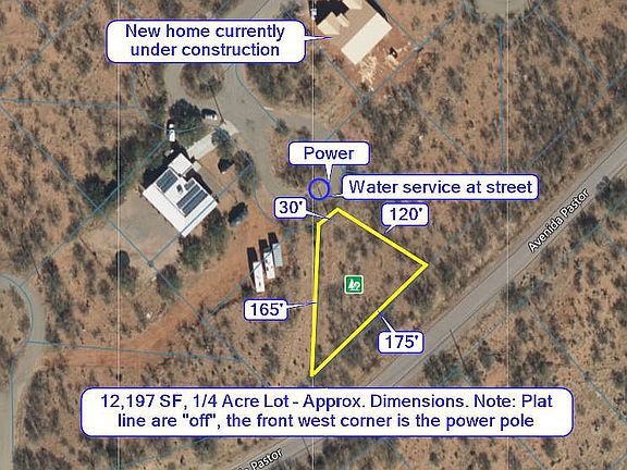 Call or text the property owner, Kevin Corcoran. Contact information and website link can be found at the bottom of this page called: "See listing website". No HOA, flat and easy to build on 1/4 acre lot (12,197 sq ft) on a paved road with water service and power to the property line, 5 new homes being built and 4 new home starts in the neighborhood with gorgeous views of nearby mountains and rolling hills. Power is to the property line serviced by Unisource, water is to the property line serviced by Liberty Water Services with the cost for the water meter installation at only $400 for the standard 5/8? or 3/4? size, and a septic system would need to be installed - a conventional septic system costs between $8,000-$12,000. This property is 2 miles to Interstate 19 and amenities including Walmart, banking, groceries and gas, 59 miles to Tucson, 20 miles to beautiful Patagonia Lake for fishing, boating, hiking and recreation and there is plenty of outdoor life and wilderness to explore with mountain ranges nearby being as high as 5,600 ft! The elevation of the Rio Rico Southwest is 3,481 ft, making for pleasant year-round weather. The lowest-priced comparable lot in this neighborhood with water and power is listed for $15,000 on Zillow. Get this property today and hold for investment, or build your dream home!