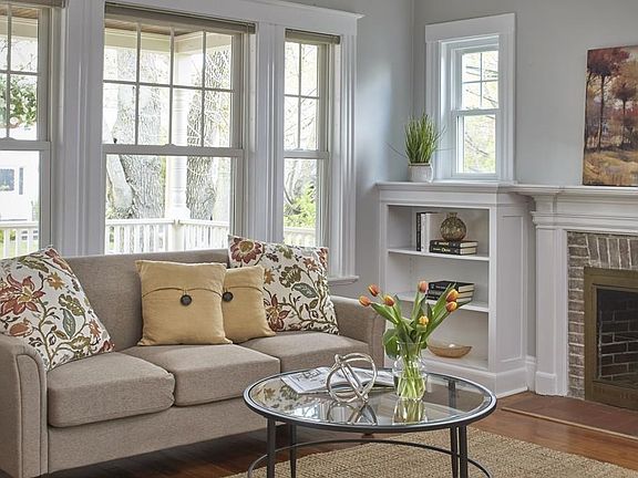 When asked to describe their house the current owners refer to its charm and how they love the high ceilings, its character, and all the nooks and crannies that make it feel much bigger than its footprint implies. A classic covered porch welcomes you and leads to a comfortable living room with a fireplace, a dining room with built-in hutch, an updated kitchen and a half bathroom. The French door in the dining room opens to a back deck shaded by a flowering Dogwood. Upstairs you will find four bedrooms, a full bathroom and a sun-filled three-season porch. The third floor is partially finished and makes an inviting hideaway for an office or exercise room. There is a finished playroom in the basement, a half bathroom, and direct access to the outdoors. A few steps from the back door is the "studio" - a heated stand-alone structure which lends itself for use as an art studio or space to work, play, or simply get away. Located near all schools and easily accessible to Cambridge and Boston.