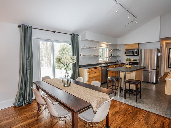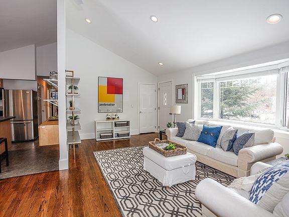 Amazing opportunity to live in Bedford. Beautiful rambling ranch on 2 acres located in established neighborhood. Not your average home. Enter the house from the front door or garage into the oversized mudroom with double wide closet. Relax in the cathedral-ceiling-living room, in front of the fire with built-in surround sound audio. The open-concept kitchen, dining, and family room area welcomes natural light from all sides and looks out onto a deck, perfect for backyard BBQs, or enjoy the connected three-season screened in porch. Recessed lighting and new hardwood floors are featured throughout the first floor. Newer heating system, central air/heating, brand new oversized hot water heater, two-car garage, and a built-in whole-home Generac make this home as functional as it is beautiful. 2 bright bedrooms and 2 full bathrooms on the main level, one featuring radiant heating and a walk-in tiled shower. Full walk out lower level with natural light. A third bedroom, full bathroom, and large multi-use space completes the lower level. Could be guest quarters or in-law potential. Welcome Home to Wentworth Woods.