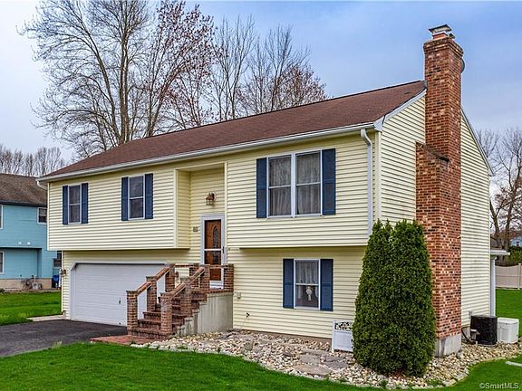 Nothing to do but move into this meticulously cared for three bedroom, 1.5 bathroom, raised ranch style home with 2 car garage. Built in 2000, this pristine home sits on a quarter acre private lot, adorned in river rock, cobblestone and lush grounds with lawn irrigation. The main level features honey oak cabinets in the kitchen, with Corian counters, breakfast bar, SS appliances, and dining room area. The formal living room is appointed in custom fluted wood columns and posts and has a gas insert fireplace with a detailed custom wood mantle. Large master bedroom and 2 additional generously sized bedrooms on the main level, all with hardwood floors under carpet. The lower level features a family room with French door access to a covered tumbled stone patio, large half bathroom/laundry room and access to a two car garage. Additional features include central air-conditioning, gas heat, hardwired Generac generator, solid wood six-panel doors, and underground rain leaders. No detail has been missed in this home. Like new, wont last!