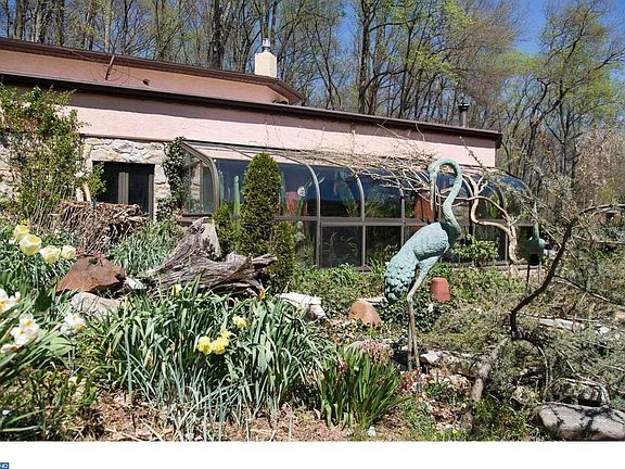 Totally unique, beautiful, dramatic Southwestern style earth-sheltered passive solar home in a 5.68 acre paradise amidst spectacular specimen plantings and gardens, lush grounds and woodlands with a stream meandering through. Owned by a horticulturalist and artist, this home is powered by the sun, carries very little expense and features expansive, open living spaces both indoor and outdoor. Charming brick walkways, patio, meditation gardens, a pond ready for koi, 3 outbuildings, and for fun an official regulation size shuffleboard court! Create your artist's lair or downsize in style amongst nature's bounty just 5 miles from Route 422. If you are looking for a peaceful lifestyle and one with nature, look no further!