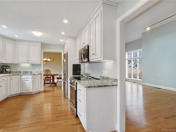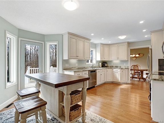 PROPERTY IN MULTIPLE OFFERS. HIGHEST AND BEST DUE SUNDAY, APRIL 11, BY 6:00 PM. SELLERS WILL REVIEW THIS EVENING. Beautifully updated home on over 10 private acres. In the country, but close to Route 2, so easy to get to Hartford or New London. Brand spanking new kitchen featuring gorgeous granite counters, new Frigidaire Gallery electric stove with glass cook top, new Frigidaire microwave/vent, new top of the line KitchenAid dishwasher, and Frigidaire refrigerator - all stainless steel. Freshly painted, new engineered hardwood flooring on first floor, MASSIVE family room with to-die-for wet bar with granite counter and wine fridge, and a pellet stove to keep you toasty. Right off the family room is your very convenient office space. A HUGE enclosed and heated breezeway takes you to the mechanic's dream garage which is set up for a welder and air compressor and also has anchor pots in the floor. Mechanicals are almost brand new, too. American Standard furnace and Central Air unit installed in 2021. Hot Water heater installed in 2019. Roof replaced May 2019 with gutter guards installed on the upper level. New back deck was installed 2019. The property is level, with a good amount cleared, and would be great for someone who needs space for equipment or wants to have farm animals. Please see virtual tour for 3D view of home. Long driveway - please do not drive down without appointment. House cannot be seen from street.