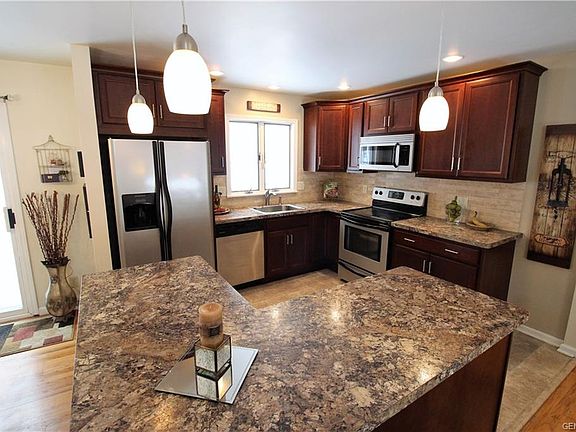 Beautifully updated home in quiet neighborhood! Enjoy 1.2 acres of a picture perfect wooded hill lot! Tastefully complete with modern paint colors and finishes. Brand new kitchen with stainless steel appliances included and open concept island over looking dining and living rooms! HUGE master with 3 closets and sitting area! Master suite has full bath and sliding glass door to large deck. Lower level family room with gas fireplace and pool table included! Updated vinyl windows throughout. Call today to make an appointment to see your new home!