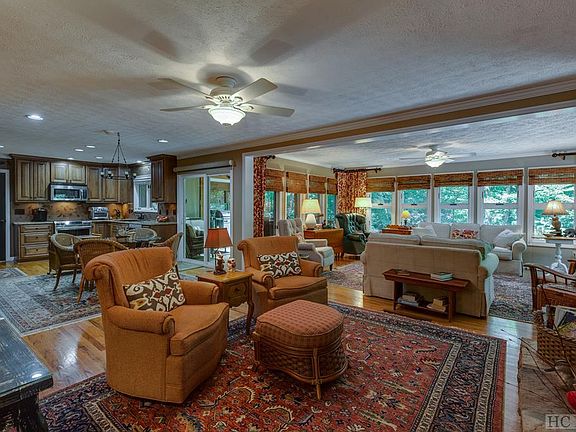 OUTSTANDING LOCATION and being sold furnished*...Tucked away at the top of a private Cul-de-sac in HIGHLY DESIRABLE WILDCAT CLIFFS COUNTRY CLUB. This impeccably maintained home, is perfectly situated on a 1/2 acre lot with a park like setting. Grand entry way, formal living room & private dining room with LARGE cozy covered deck and TRULY GORGEOUS hardwood floors throughout the main level. Open and spacious kitchen is truly is the heart of this beautiful home. The huge covered deck off the kitchen and family room...is large enough to be a second Living Room - it is GREAT for entertaining. The main floor has 3 bedrooms, generously sized sun-filled sunroom is seamlessly part of the LIVING ROOM area. The large master bedroom has direct access to the sunny uncovered deck. Roomy downstairs bunk-room with full bathroom and screened porch is the perfect location for grandchildren. CLOSE ACCESS TO THE CLUBHOUSE and the 17th TEE-BOX. Sold FURNISHED* NEW HVAC installed in 2019, NEW STOVE installed in 2020, Community water, Community sewer. 2 hot water heaters; one gas tankless and one electric. Encapsulated crawl space. Golf cart is included in the sale of the home.* To view exclusions list-please contact agent