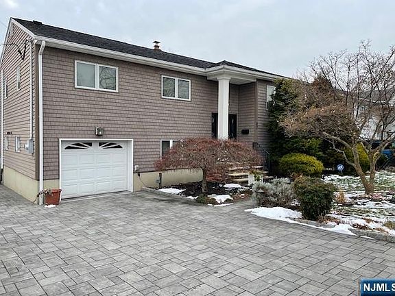Bi-Level home in move-in condition. LR(12x13), DR(11x12) w/SGD to deck with stairs to yard., Modern Kitchen w/newer cabinets and quartz counters. 3 bedrooms (10x11), (11x12), 11x14), Modern bath w/Jacuzzi. Bessler stairs to attic storage. Ground level has Family room (11x23) w/half bath, a large (12x17) room that could be an office or 4th bedroom, and a large laundry room/furnace room. Rear patio and shed. Gas HWBB 3 zone heat and central a/c. I car garage and block driveway fits 4 cars. Nice landscaped lot. Utility easement on White Terrace side of home. Hardwired smoke detectors, Alarm system. Low East Rutherford Taxes.