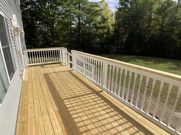 Welcome home to this large, bright, private colonial situated towards the back of the lot in a quiet subdivision. Enter the long driveway & you'll be greeted with a yard big enough for all activities but not too big mowing becomes a hassle. Inside the home you'll find new quality flooring throughout the first floor, and in both bathrooms upstairs. All 3 bathrooms have new upscale vanities, 2 with marble tops, & all new toilets. Brand new stainless fridge, led lighting, ceiling fans, faucets and fixtures make this home feel new. Pantry in kitchen, & bathrooms have closets for additional storage. This floor plan flows smooth. All 4 bedrooms are spacious with wide doorways giving off a grand feeling. Master bedroom with own bath and two closets. Fresh paint in every room and even outside. All three decks have new decking at a minimum. Calling all outdoor enthusiasts to enjoy the moose, deer, turkeys, and plenty of wildlife that passes through your very own yard on a daily basis. The oversized garage is fully insulated, & fished off with heat. It has been set up with an automotive vehicle lift in the past & is very possible to set up again with the ceiling height more than 12 feet tall! Direct entry to the house & basement through the garage makes for the ultimate setup, especially in bad weather or winters. Enjoy control and efficiency over the heating system with 4 heating zones. The full dry basement is excellent for ample storage or even a workshop. Includes a finished off room that could be used as an office with high speed internet access available. Underground electricity & cable. No association fees. Can NOT see home from road.