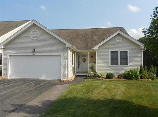 RARE FIND!! This much desirable RANCH STYLE MODEL offers luxury and comfort of one floor living! Fantastic open floor concept with cathedral Living Room with fireplace that opens to the Kitchen and Dining Area. Oversized Kitchen loaded with white cabinets and white appliances leads to formal Dining Room and sliders to a private deck. First floor Master Suite with full bath and closet, and another Guest Bedroom on the main floor. Check out finished Lower level with huge granite counter loaded with cabinets in the Family Room, full bath, and ample storage space with access to the patio area. A MUST SEE!! ACTIVE ADULT 55+COMMUNITY.