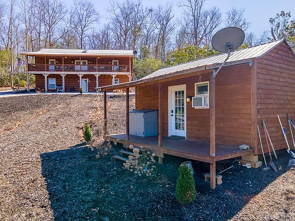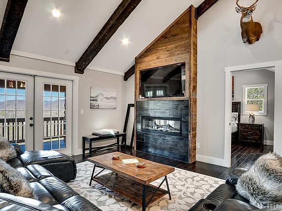 Experience the luxuries of a truly private sanctuary in Franklin, North Carolina. An astounding panoramic 180-degree view surrounds this turnkey home without a neighbor in sight. With its hardwood floors, light and bright rustic finishes, and modern design, the interior combines traditional and mountain modern decor and is exquisitely furnished so you can begin creating your magical mountain moments immediately. A five-burner gas cooktop, double oven, and exquisite granite countertops are a few of the highlights of the high-quality kitchen. The main bedroom accesses the front covered porch and a spa-like en suite which boasts a dual vanity, dual shower with a waterfall shower system, and a standalone bathtub. Located on the main level, the guest suite has access to the covered porch with views of the Nantahala Mountains in the distance. On the terrace level, the bedrooms also enjoy views of the mountains. This home lies on nearly four acres of natural mountain landscaping, and there is a bunkhouse for those joyful summer evenings that bring an overflow of guests. With a proven rental history, this property has incredible income-producing potential.