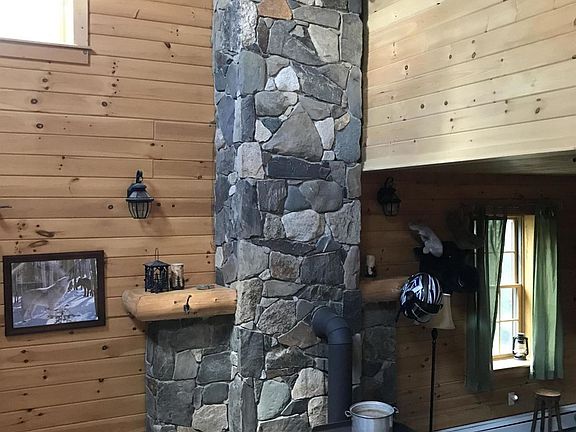 Log Cabin on ~56 acres, near the Appalachian Trail, the rejuvenated town of Monson, Lake Hebron and Doe Pond. Home has 5 BRs (two BRs are ensuite) and 2 BAs and will accommodate all your guests! Wood stove, a kitchen to die for and a full basement AND huge double car garage. Additional land is available. Privacy is guaranteed!