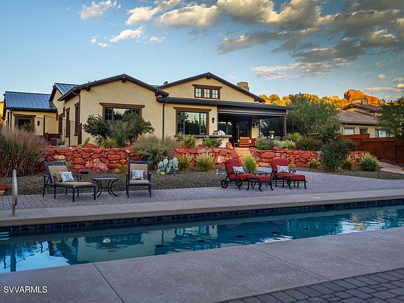 Fantastic rare creek front property located in Sedona's most desirable luxury gated community of Sedona Ranch on Oak Creek. Enjoy the quintessential Sedona indoor/outdoor lifestyle with gorgeous sunsets lighting up the red rock vistas around you and extensive outdoor areas to enjoy. The moment you enter this modern ranch style home you feel drawn into a world of its very own - a tranquil, serene timeless feeling surrounded by the beauty of nature. This property features a luxurious state of the art 50 ft x 12 ft heated salt water lap pool, extensive upgrades and gorgeous landscaping. The 2,544 sf home with 3 bedrooms/3 baths sits on a spacious 1.23 acres and is so inviting, you will not want to leave! Lightly lived in, and very well maintained. Make your appointment today.