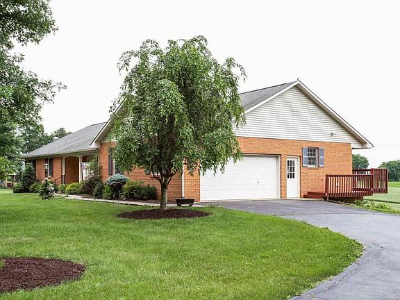A place to call HOME!! This 3 bedroom, 2.5 bath brick ranch on 1.2+ acres offers gorgeous pastoral views, ample living space, and a full unfinished basement. The kitchen is open to a large breakfast nook (lots of natural light from large picture window overlooking deck & views!) and the family room. Family room has a wall of built-in shelves/cabinets and a cozy fireplace. Spacious living room in the front of the home gives many possibilities. The unfinished basement is bright from natural light through numerous windows, and walks out onto a patio below the main-level deck. Basement offers a perfect storage area or endless possibilities for future expansion. Oversized two-car garage and attic round out the many storage options.