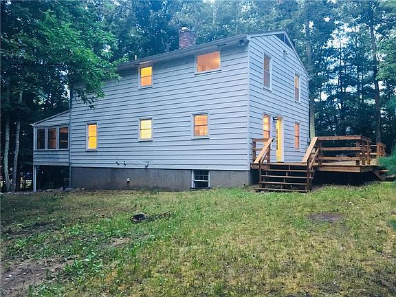Nature abounds; feel like you are living in the deep woods yet close to all amenities. Beautiful hardwoods on entire first floor just refinished, new carpet 2nd floor, Master bedroom has California Closets and beautiful stone/glass shower; interior of house freshly painted; some new doors and hardware, new interior/exterior lighting, updated bathrooms (floors vanities, fixtures, paint). All windows are new/newer. Huge 4 season sunroom with windows galore!! Finished room in basement with brick fireplace; great recreation room. New 3 bed septic system to be completed by early Sept. Exterior deck just powerwashed and stained for many years of enjoyment. Just pack your bags. Place is move in ready!