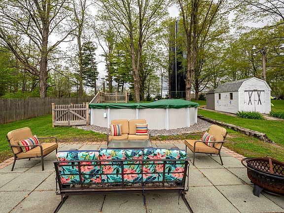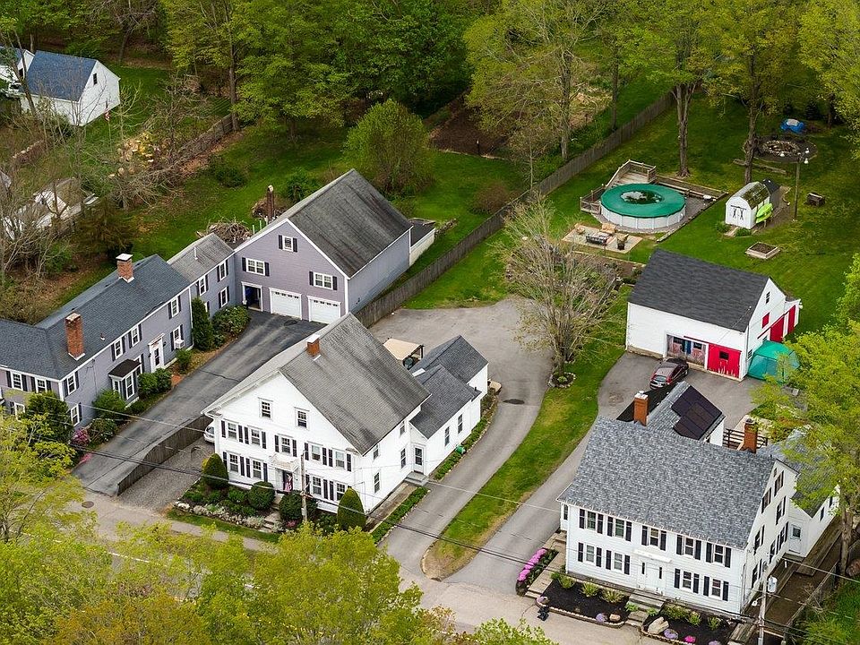 This antique colonial is located in lovely downtown Newfields. Walk to library, town hall, and country store. The home features 5+ bedrooms and three baths. Also great potential for an in law/au-pair suite or accessory dwelling unit on the first floor. The first floor has an entry area with mudroom, laundry and full bath. Large kitchen with Butler's pantry and dining room. Living room with wood burning fireplace. Family room with pellet stove and also a separate work out room and office area with a full bath. 2nd floor has three spacious bedrooms and a new bath added in 2024. Third floor offers two more bedrooms and office area and large walk in closet. Attic has a climbing wall and offers plenty of storage space. Front and back yards have nice plantings and raised beds for gardening plus 2 outdoor patios, above ground pool and fire pit. Showings start at the Open House Sat. 5/11 from 11-1 pm.