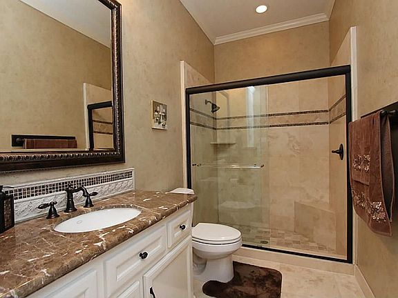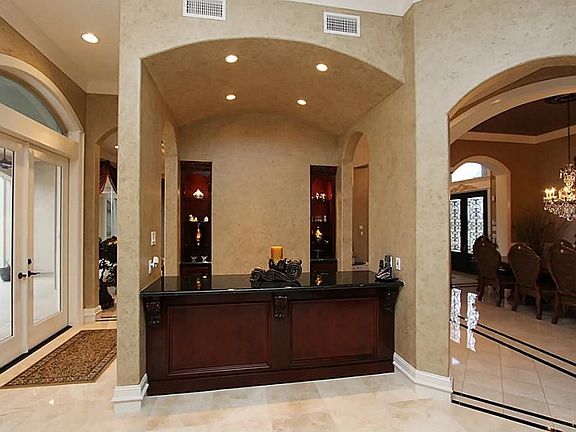 Lovely Custom Mediterranean Home overlooking lake and golf course in sought after gated community! Schonbeck crystal chandeliers, Faux painting. Special design staircase, Master and a guest bedroom down! Offers 2nd Kitchen, Custom Media Room, Flooring-Travertine in den & kitchen, Marble in entryway. Outdoor kitchen overlooks remote controlled pool-spa,heated and great lighting! Too many features to name! Shows like a Model Home.