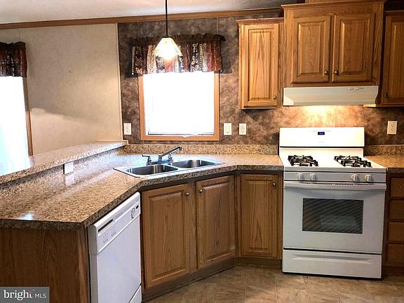 You'll find main floor living in this immaculate 1200 sq. ft mobile home. This open floor plan offers a large carpeted living room, dining space, nicely appointed 19 handle oak kitchen with raised peninsula bar offering seating for 3, gas cooking, dishwasher, double sink, granite look laminate counters, pendant lighting. Laundry room conveniently located off the kitchen. Master bedroom includes its own bath w/ jet tub, shower stall and oversized vanity. There are two additional bedrooms and another full bath. The entire home is in excellent condition. Enjoy your morning coffee on the attractive 10x22 covered front porch. There's a storage available in the storage shed out back. Lovely wooded setting. Parking for 3 cars in driveway. Lawn care and snow removal services available for residents or DIY. This home can remain in the park or be moved to another location. Come and see.