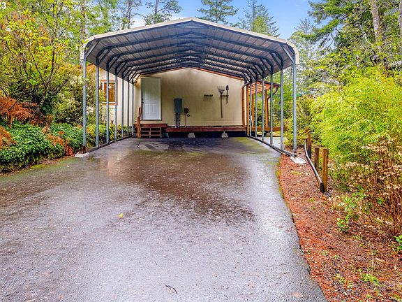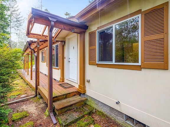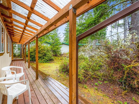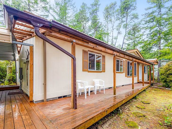 Price just reduced! Rare 3 bed 2 bath home in the all ages Gated Coast Village Community. This well appointed home has vaulted light filled rooms w/ views of the natural green belt leaving the feeling of a natural retreat in all rooms. Sit on the wrap around covered deck & soak in the sweet forest aroma that fills the yard & community. Large clearance carport offers 2 covered parking spots. Low HOA fees offer Gym, Several meeting rooms, Play ground, Gardens, Pool, Laundry, Garbage, Wifi, Water & Sewer.