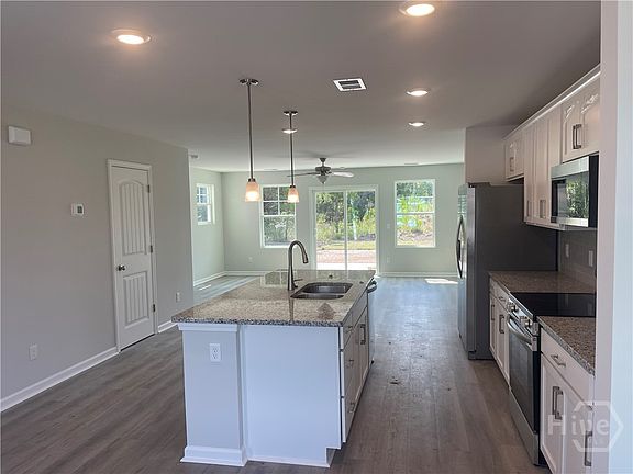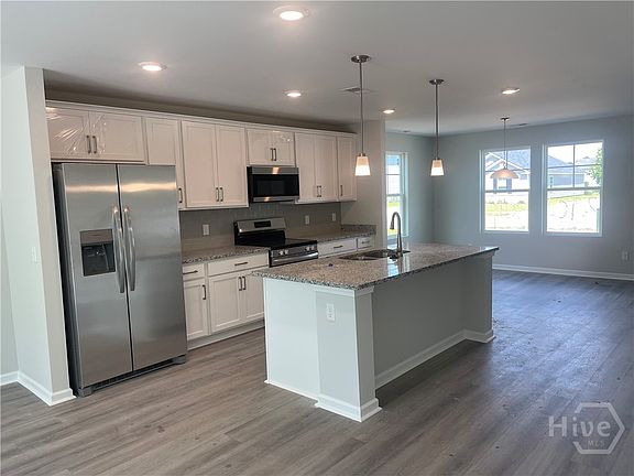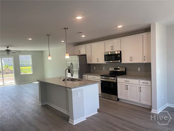 HOME IS MOVE IN READY!! Savannah's most trusted local builder offers our Blue Ridge TR plan. This home's Kitchen has some excellent upgrades including all New Stainless Steel Kitchen Appliances Including the Frig, Granite Countertops, Large Island With Pendant Lights Above and 36" cabinet uppers with crown molding. Upstairs are all Four Bedrooms Including the LARGE Primary Suite featuring a 5' shower only with glass door, Double Sink Quartz Vanity and a Large Walk-in Closet. Upgraded Vinyl Click flooring covers all of the main living area Downstairs as well as Laundry and all Baths. The Home Also Features an ADT security system and Quartz Countertops in full bathrooms. Outside You Have a Large 16' x 12' patio and fully sodded and irrigated yard.