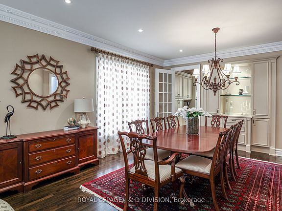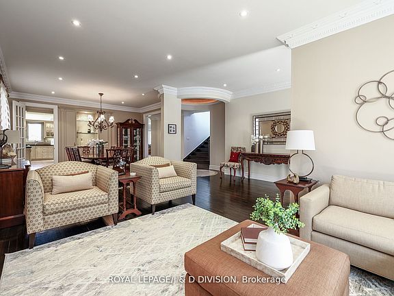 Custom-built residence located in prestigious Owen School neighborhood on a quiet and highly sought-after street, this elegant home offers the perfect blend of grand entertaining spaces and comfortable family living. Grand foyer that flows into an open-concept living and dining area. 10-foot ceilings, detailed plaster crown mouldings, and rich hardwood floors, marble finishes, and a sleek modern powder room further enhance the sense of luxury, paneled library with French doors provides a refined space for a home office, study, or library/reading retreat. A mudroom/side door with direct access to an oversized double-car garage with level 2 EVC outlet. Large chef/s kitchen is a standout feature, spacious center island, granite countertops, bright breakfast area with a walk-out to a stone patio. Open to the inviting family room with custom millwork, gas fireplace overlooking the gardens. Luxurious primary suite complete with its own fireplace, six piece ensuite bathrooms, hardwood floors, massive recreation room with a wet bar, fireplace, space for games area, wall to wall windows and two walk-outs lead to a second stone patio. A teen/nanny suite with three-piece bathroom or make this your exercise room...Additional highlights: Andersen windows, a new roof (2024), hardwood on two levels, security/cameras, natural light throughout the home, extremely private landscaped gardens: extensive stone patios, exterior gas fireplace, gas BBQ, night lighting, sprinkler system. superb public (Owen St. Andrew's & York Mills CI) and private schools close by, easy walk to transit and subway. This turnkey residence offers outstanding space, exceptional flow, impeccable finishes, making it an exceptional choice for executive family living.