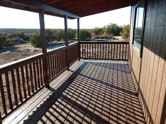 Home with a beautiful view. Very private 10 acres tucked back into the trees with panoramic view seen from living room, both bedrooms and covered deck. Remodel incomplete. Newly painted inside and outside,new doors,vanity,toilet. Needs new floor covering, fidge, range, wood or pellet stove etc.. Professionally fenced. Security system. Wired for solar power. Great buy with a little work left to complete the update.New metal roof in 2007 Sold As-Is Buyer to verify shared well and hauled water.