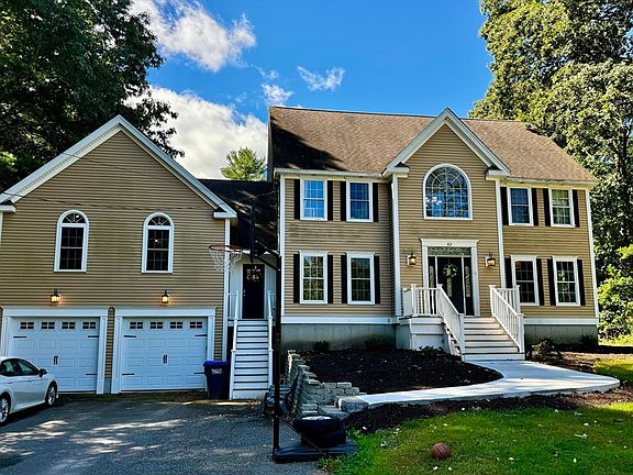 Warm & inviting, this Federal Front Colonial was rebuilt in 2007. Welcome guests into the two-story foyer featuring cathedral ceiling & turning staircase. This room opens to a formal dining room & den/office providing a serene workspace at home. The expansive 20-foot kitchen includes a center island breakfast bar, office desk space, & wine cooler & opens to a huge deck. Ascend a few steps to the vaulted family room complete with see-through gas fireplace & a sunroom for hobbies or games. A pantry & storage closet can be found in the side hallway along with a full bath with shower & laundry hookups completing this level. Up oak stairs to three bedrooms & two more bathrooms. The Primary Bedroom features a walk-in closet, tray ceiling & private bath with jetted tub & shower. The lower level is partially finished, opening to an oversized 24x36 garage with 3 overhead doors & plenty of workshop space. A large deck with outdoor kitchen overlooks the private 2.6-acre lot, patio & fire pit.