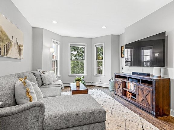 Rare opportunity to own a gorgeous updated condo moments from Ball Square and the new Green Line station. Nestled into a private dead end street on the Medford/Somerville line, this sun filled unit offers open concept living and dining in a beautiful brick rowhouse. The large open living space allows for seamless entertainment. An updated chef’s kitchen with stainless steel appliances, gas cooking and quartz countertops overlooks your private deck and dining area. A lovely nook by the deck is perfect for a home office. The charming first bedroom with large windows and custom closet features a beautiful exposed brick wall. The primary bed features two closets and a private entrance from your assigned off-street parking spot. A full bath provides ample storage and in unit washer/dryer. Newly installed ductless split system and private basement storage complete this perfect home or investment opportunity.