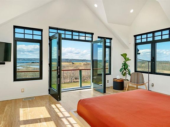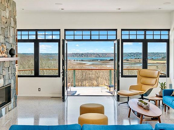 South Tiverton, RI | Modern Luxury | New Construction | Water Access - This home's beauty transcends description. The design and orientation highlight the stunning scenery, offering expansive water views of the Sakonnet, Seapowet, and farmland. Modern architecture enthusiasts will love the design, style, and functionality, which offer clean, simple lines, custom craftsmanship, and luxurious finishes. Every element, both natural and durable, enhances the home's appeal, providing the perfect combination of urban and seaside living. The open concept living, soaring ceilings, and floor-to-ceiling windows flood the space with natural light, seamlessly blending indoor and outdoor living. All three levels of the home offer access to beautiful outdoor spaces decks, patios & balconies and are accessible via elevator. The chef’s kitchen & butler's pantry are outfitted with high-end appliances, stainless counters and built-ins. The 2nd level primary is a private oasis, accented with soaring ceilings, custom dressing room, fireplace, balconies, and 2 ensuite baths. The finished walkout level offers a versatile space for entertaining, gym, theater, guests, office; all with water views and patio/garden access. Room for pool. The Farmcoast Area comprises quaint coastal villages, with charming cafes, art galleries, eateries, boutique shops and is just minutes away from pristine beaches and marinas. Close to Rt 24 and 195.Move in ready - Turn-key option available -