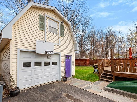 Charming Two-Bedroom Home in Convenient Bennington Location Welcome to this inviting two-bedroom, one full bath home offering spacious and versatile living areas. The main floor features a large living room perfect for relaxing or entertaining, a formal dining room, and an eat-in kitchen with a door leading out to a generous deck-ideal for outdoor gatherings. The lower level boasts a large family room with a cozy spot ready for a woodstove, plus an additional room perfect for a home office, media room, or guest space. An oversized one-car garage provides ample storage space above, complementing the fenced backyard and handy storage shed. Conveniently located in Bennington, Vermont, this property offers both comfort and practicality with easy access to local amenities. Don't miss the opportunity to make this well-maintained home yours!