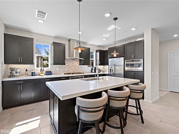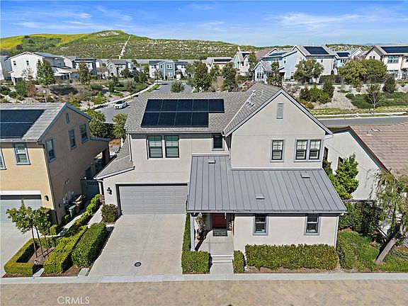 Located in the award-winning community of Rancho Mission Viejo, this former model home is the largest floor plan at Vivaz, and features fully owned solar panels, two full master suites, Energy Star upgrades, dual-paned windows, custom paint, dual-zone smart thermostats, plantation shutters, custom motorized window treatments and much more!! This beautiful single family home with four bedrooms, three and a half bathrooms, 2 car garage and 2,185 square feet of living space is the perfect example of modern resort style living. The open floor plan with a main level bedroom and spa-inspired bath with dual vanities, separate shower and soaking tub, and walk-in closet, is perfect for families or those seeking plenty of space for guests or a home office. A modern chef's kitchen showcasing sleek cabinetry, composite marble countertops, and stainless steel appliances will make cooking an absolute delight. The stylish living room features luxurious hardwood flooring leading outside to your exclusive backyard oasis. Enjoy outdoor living at its best with a custom built-in BBQ with fridge, vibrant and mature succulents and a covered 'California Style' indoor/outdoor patio for entertaining or relaxing. Upstairs, you will find two secondary bedrooms, a full guest bathroom, a separate in-home laundry room with a utility sink, and a beautiful secondary primary suite featuring a sleek walk-in shower, soaking tub and custom California walk-in closet to provide you with plenty of space while you're getting ready each morning. The two-car garage features epoxy flooring, providing a durable surface that is resistant to wear and tear while being easy to clean. Attached metal cabinets add additional storage space for all of your tools and supplies, as well as an organized look. The state-of-the-art tankless water heater system helps to maintain the perfect temperature with minimized energy costs. Exclusive to Rancho Mission Viejo residents are all amenities in the Villages of Sendero, Esencia, Rienda, and future Villages. From breath-taking resort-style pools and spas, Esencia school K-8, community farms, fitness centers, guest house, putting green, bocce ball courts, tennis and pickle-ball courts, playgrounds, coffee shop, fire pits, an arcade to name but a few! This gorgeous home will provide you with an elegant lifestyle that won't soon be forgotten!