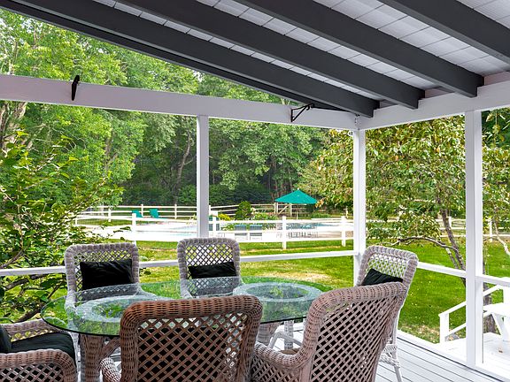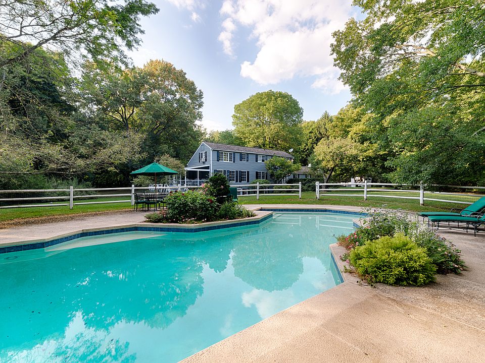 Bedford Charmer on 4 beautiful, flat, quiet, picture-perfect acres with terrific Shoreline saltwater pool. Gorgeous Living room open to large screened porch, spacious Formal Dining Room with fireplace, Kitchen with Viking 6 burner stove & double ovens with warming drawer, 2 Miele dishwashers, wine refrigerator, updated boiler, hot water heater, cedar shingle roof and freshly painted exterior. 5 bedroom septic & full-house commercial grade generator.