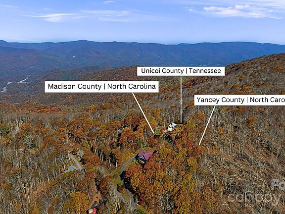 Discover an unparalleled, and very rare location w/in the protected gates of the 5,300-acre Wolf Laurel community, where Unicoi, TN, Madison, NC, & Yancey, NC counties meet. With Pisgah National Forest & the Appalachian Trail as your backyard, this mountain retreat is truly unique. The expansive south facing deck offers a 55-mile panoramic views of Mt Pisgah and Black Balsam Knob, to name a few, with views of Table Rock from your backyard. The kitchen showcases beautiful granite countertops with sweeping outdoor views making every moment spent here a pleasure. The main-level primary with ensuite luxury bathroom includes a private covered porch, ideal for watching local wildlife. A matching guest suite above adds privacy, with the cozy wood-burning fireplace to keep you warm in the winter months. A spacious 2-car garage for all of your storage needs, complete the home. Offered fully furnished, this home is move-in ready for those seeking an effortless start in the Wolf Laurel community.