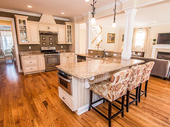 Beautiful seashore colonial on quiet street in a great neighborhood, walking distance to schools and town. Built in 2010 this home has hard wood floors, 9 foot ceilings, and luxury finishes and moldings throughout. Features a large open concept kitchen, family room and breakfast area, formal dining room with a tray ceiling and a French door enclosed office. Master suite has extra-high raised ceiling and a large built-out walk-in closet. Master bathroom has double sinks, a Jacuzzi tub, a stall shower and lots of storage. Additional 3 spacious bedrooms on the 2nd floor. Basement is finished with high ceilings and a half bath. Outside is an over-sized fenced-in backyard with large patio area and one car attached garage with extra side storage area. 2748 sq ft plus 600 sq ft finished basement.