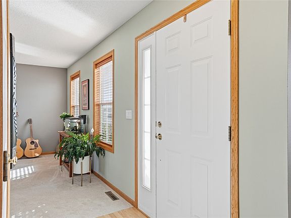 What a beautiful house in a beautiful neighborhood! You will feel right at home from the moment you walk through the front door. Enjoy entertaining for the holidays on the main level as your guests linger in the dining room and relax in the oversized great room with classic brick fireplace with easy flow into the kitchen. Kitchen features all the quality that you expect with a custom Flynn home featuring an oversized island. Upstairs, you will find the primary suite with vaulted ceiling, attached bathroom and walk-in closet plus 2 oversized bedrooms. Lower level is finished with a fun rec room, full bathroom plus non-conforming bedroom, currently being used as a music room. Could easily be used as a home office, craft room or playroom. This gem comes with a one year home warranty for buyers piece of mind. Outside, you have a deck, flagstone patio with pergola and a 6 ft tall fence--perfect for your furry pups. All of this conveniently located within walking distance for most to school. This two story is so warm and inviting you will have a difficult time leaving home once the snow starts to fly. Come check it out today.