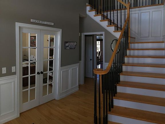 Nicely remodeled home in the Pine Hollow neighborhood. This home is located on the premier lot within the subdivision, with panoramic views of Little Herring Pond. The kitchen has been fully remodeled with high-end edged granite tops, marble backsplash, led counter lighting, decorative cabinet moldings, and new stainless appliances. Newly installed Brazilian teak flooring in kitchen and family room is highly durable. Oversized dining room with a fantastic view leads into the formal living room with window seat. Dramatic 2-story foyer with new trim details. Upper level contains 4 bedrooms, including the "Oasis" master suite with large sitting area and tray ceilings, master bath with 6' jet tub, 3 large bedrooms with bath, and large laundry room. Basement is partially finished and contains a sitting room / guest suite, family room, and nice full bath with shower. Large built-in shelving in remainder for ample storage. Come for a showing and you'll fall in love with this home!