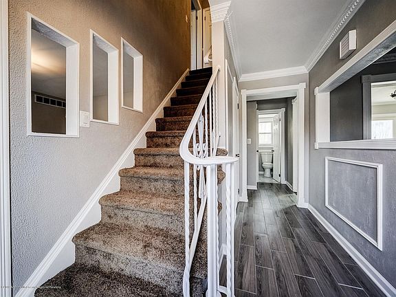 - RoomDiningRoomFeatures: Dec Molding, Floor - Laminate, Bay/Bow Window