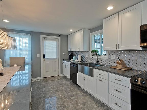 Price Improvement!! Elegantly renovated 3 Bed 2 Bath home in Granby Ma! This home is absolutely dazzling in every sense! Perfect open concept kitchen with beautiful cabinets and flowing grey granite countertops add to the beauty of this marvelous kitchen. Wonderful glimmering backsplash with the absolute best in samsung kitchen appliances & a Lovely kitchen island with glimmering grey granite countertop and classy chandelier perfectly matched with shiny marble tiles throughout! Living room has open concept with a sunken veneered fireplace and shiny wood floors. First floor laundry already in place to make laundry time more easier! There are two gorgeous full bathrooms with marble floors and shower walls that add to the prestige of this home. The first floor master bedroom boasts space for big furniture and marble floors with full bath! The upstairs has two beautiful bedrooms with gleaming hardwood floors! Partially finished basement, gorgeous wrap around rear deck with huge yard!!