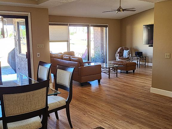 3rd bedroom as office. Airbed if needed. Includes ulilities but golf if desired at your expense. Gas grill on patio, 21 pools, pickleball courts and tennis. Home overlooks 5 and six holes of course. Close to El Paseo and more.