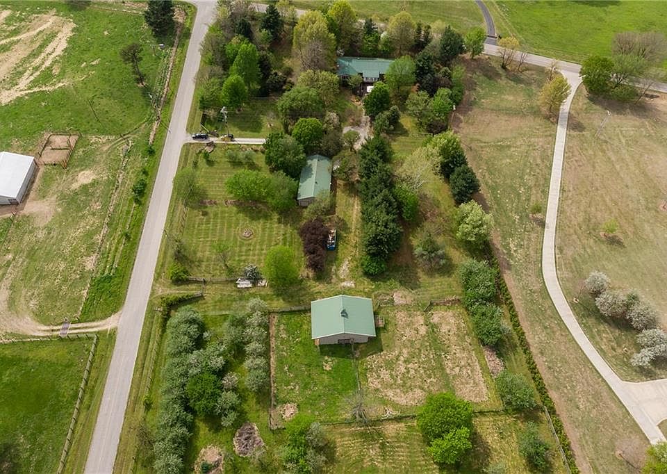 Country Living only 3.8 miles from I-49! Beautiful mini farm with 4.62 acres, 4 bdrms, 3 baths including a 1,200 sq ft mother-in-law addition that could be used as Master with small den/home office, walkout basement has den/bedroom and additional bath. Large detached workshop with rustic apartment could be used for business or rental. Barn with 6 stalls. Land includes orchard with 35+ producing apple trees, blueberries, figs, garden spot, and flowers too numerous to mention.