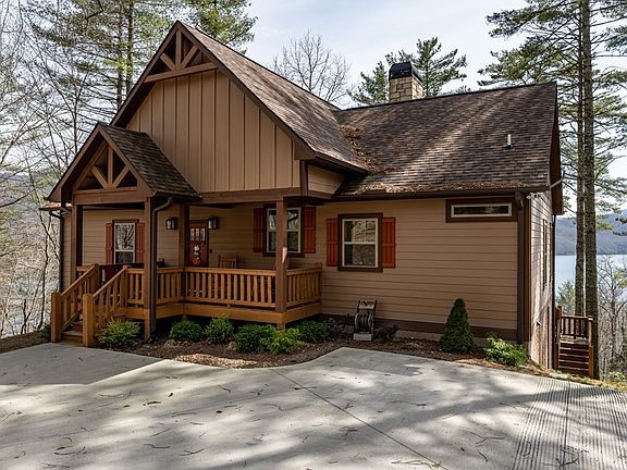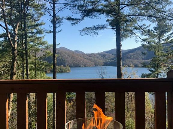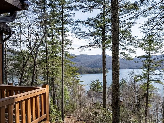 Welcome to your beautiful lake getaway at pristine Lake Nantahala .This home will not disappoint- shows like new.Soaring stone fireplace and phenomenal views of lake and surrounding mountains.Upper level of home consist of open great room with high ceilings and upscale kitchen and detail oriented finishes throughout.Master bedroom overlooking lake with en suite bathroom with double vanity with granite.2nd Bedroom on main overlooking lake and an.additional office/bonus room space on main level making working from home convenient if needed.Lots of outdoor living space from the upper and lower decks with great lake views.Lower level home has oversized den/rec room and 2 additional bedrooms and bathroom. Lake Access to community dock if desired for additional fee is short distance away.