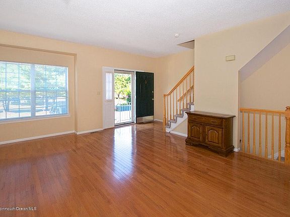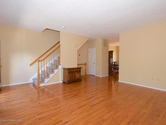 Well maintained townhouse in desirable Holmdel Township. Unsurpassable school system. This move in ready, 2 bedroom, 2 1/2 bath spacious townhome is a must see! The first floor has a immense living room, dining room, eat in kitchen and 1/2 bath and hardwood floors throughout. High ceilings give this property a very open feel. Slide in doors lead to a private deck and common yard. The second floor is newly carpeted, along with both staircases. This home has 2 large bedrooms , 2 full bathrooms, and plenty of closets. The master suite hosts a walk in closet, jacuzzi, and his and her sinks. The finished basement has a laundry room and plenty of room for storage. The hot water heater is newly replaced. Come take a look at this beautiful property for yourself.