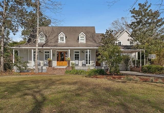 Mandeville Schools Dist. Cypress millwork, soapstone countertops, s/s appliances, pine, flooring, Old World Massonry fireplaces, one in & one out. Stunning with two living areas, opens to keeping room. Bath that opens to rear for easy access to pool.Two separate upstairs areas for entertainment. Unique design with all the amenities for entertaining, 2 master suites in this home and great Master Bath.Lots of custom closets. Backs to wooded paradise to enjoy. Private boat launch for area only.