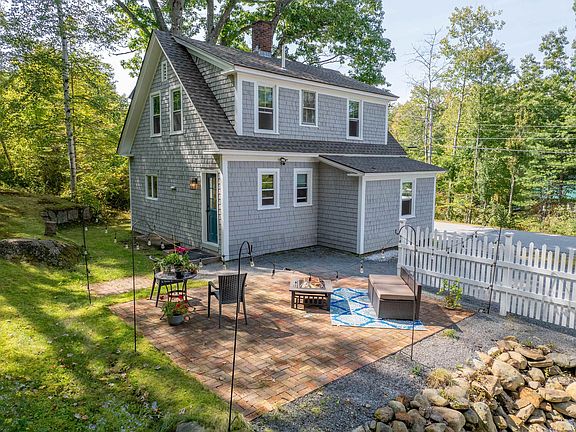 Charming 1920s Cape with peek-a-boo water VIEWS of Squam River, just 1 mile to the town beach, located at the southern end of Little Squam Lake! Situated on just shy of an acre, highlighted with a serene brook, outdoor patio area, horseshoe driveway and detached garage, this well-cared for home is conveniently located to surrounding lakes and mountains with easy access to I-93. Freshly painted exterior and interior! New roof November 2022. Bright and airy open kitchen with newer appliances and pellet stove. 3/4 bath, cozy living room- featuring a 2nd pellet stove, home office (or 4th bedroom) and first floor laundry. Upstairs you'll find the primary bedroom with hardwood floors and 6x4 walk-in closet. Two more bedrooms and a shared full bathroom with new tub/shower also offered on the second level. Whether you're a first time home buyer, looking to downsize or interested in an investment opportunity, this property is a must see. Public water and sewer. 3 minutes to Squam Lake, 5 minutes to I-93, 30 minutes to Loon Mountain and under 2 hours to Boston.