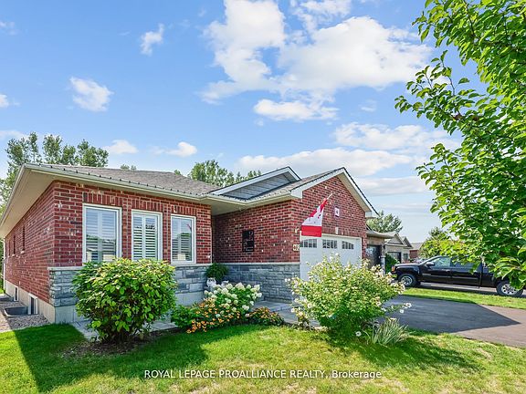 Welcome to 82 Royal Gala Drive, where modern design meets a tranquil conservation setting. Backing onto woods with no rear neighbours, this fully finished 4 bedroom, 3 bath true bungalow blends privacy, nature and contemporary living. Stroll or bike pathways leading to Presqu'ile Provincial Park and downtown Brighton, an unmatched location for recreation and convenience. The all-brick & stone exterior offers timeless curb appeal. Inside, the main floor features 2 bedrooms and 2 baths in a separate wing layout, giving guests their own private space. The showstopping kitchen boasts ceiling-height cabinetry, quartz counters, modern fixtures, WI pantry, Island and a gas range for the chef at heart. An open concept plan flows into the dining area and great room with gas fireplace and California shutters, while garden doors lead to an oversized deck overlooking the yard and woods. Spacious Primary suite impresses with a striking feature wall and luxurious 4-pc ensuite, complete with double vanity, quartz counters, huge walk-in glass/tile shower with seat and....heated floors! A main floor laundry with interior garage access makes chores a breeze. The finished lower level adds incredible living space, featuring a large recreation room with fireplace, a versatile nook for an office, playroom or hobbies, two generous bedrooms and a full bathroom ideal for more guests, extended family or your teenagers. Outdoors, entertain under the newer gazebo on the stone patio or relax on the deck under the stars with a glass of wine. A garden shed keeps tools tucked away, while the attached garage provides secure parking and storage. With modern finishes, a functional layout and a conservation lot offering unmatched tranquility, 82 Royal Gala Drive is a rare opportunity to enjoy contemporary living steps from nature trails, the beaches at Presqu'ile Provincial Park and Brighton's abundant amenities with shopping, cafes, arena, curling, YMCA, library, schools, tennis & pickleball courts.