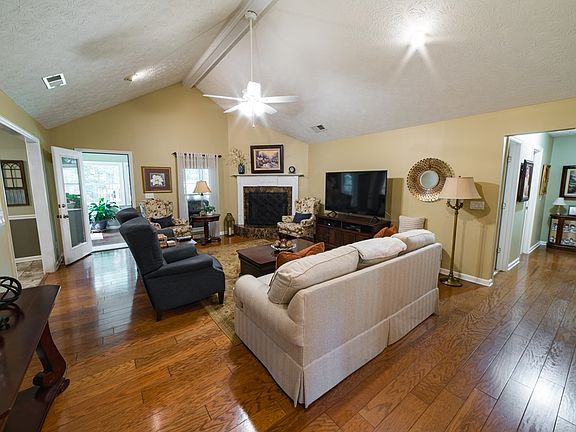 Beautiful 1.25 Shaded Acreage, All Brick Updated Move-In Ready Home, Bright, Open Split Bedroom Floor Plan, Eat-In Kitchen with Breakfast Bar & Tons of Cabinets with Quartz Counter Tops & Tile Back Splash, Under Cabinet Lighting, Huge Walk-In Pantry, Separate Dining Room, Cathedral Ceiling in Greatroom with Fireplace, Hardwood Floors, Master Suite Bath offers His & Her Walk-In Closets, Tiled Shower with Frameless Glass Door, Year Around Sunroom with HVAC system. Large Shed Wired Shed