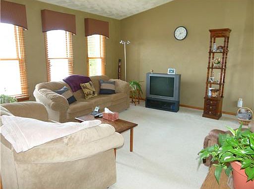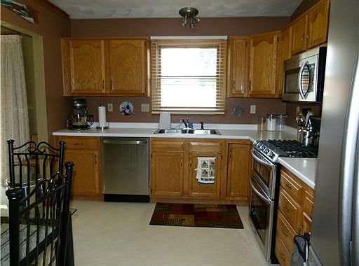 This spectacular split has been well cared for and features many upgrades throughout. As you enter the home you will first notice the bright and airy foyer that features a ? circle window, sidelights, and a gorgeous wood railing. The soaring cathedral ceilings encompass the living room, dining room, kitchen, and foyer. The spacious eat in kitchen includes plenty of cabinet space and is equipped with a disposal and a stainless steel dishwasher and microwave. The roomy dining room includes a s