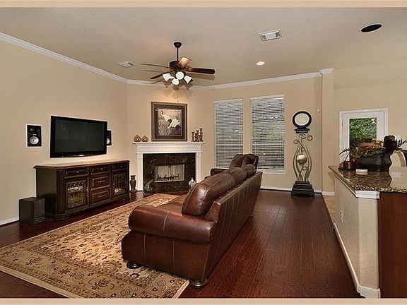 Immaculately kept one story Village Builders ''Hawthorn'' plan in Creekside! Carpet, tile & hardwood floors, curved archways, graceful columns, crown moulding & many beautiful finishes. Spacious kitchen w/granite counters, stainless appliances, maple cabinets & breakfast bar opens to sunny breakfast room; elegant formal dining; den w/gaslog fireplace; 4 generous bedrooms & 2 full baths; fenced yard w/lovely patio surrounded by pristine landscaping & sprinkler system.