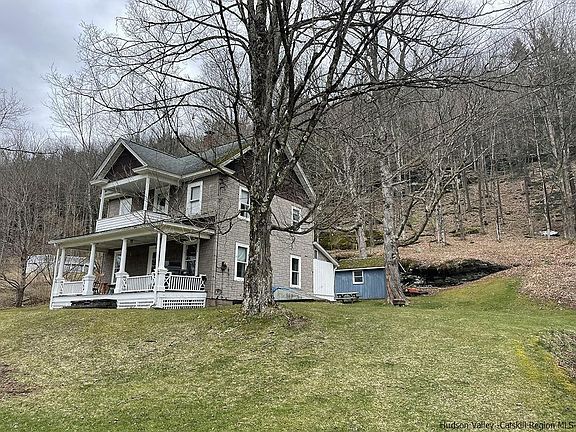 This 1916-built cottage style home SURROUNDED BY NEW YORK STATE LAND FOREVER WILD, is situated on a spacious 1-acre property, with wooded area behind the home offering plenty of room for outdoor activities and gardening. There are 2 porches in the front of the house on the first and second level. The 1440 square-foot home features a basement and attic, providing additional storage and potential living space. The detached garage and two sheds offer ample space for parking and storage needs. Although the home requires some work, it presents an opportunity for customization and personalization. The property is located in a quiet area, providing a peaceful and serene atmosphere, while still being conveniently located just a seven-minute walk to the quaint village of Margaretville offering shopping ad restaurants. This offers the perfect balance of privacy and accessibility to amenities. Overall, this home presents a charming opportunity for those looking to invest in a historic property with potential. It has great rental opportunity as well. Only 14 minutes to Belleayre Mountain Ski Center for both Winter Sking and Summer Concert Series