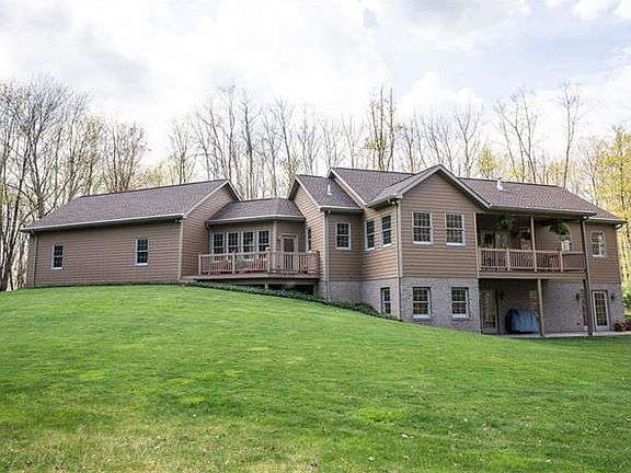 Welcome home to this meticulously kept 10-year-old home that sits on a private 11 acres. This house provides an open concept that is perfect for entertaining. The kitchen features granite counter tops, tons of counter space and cupboards along with a double oven that is perfect for cooking for guests or family. The large first floor master has his and her closets. Enjoy the view while relaxing in the en suite jet tube. The extra space downstairs in the finished family room and the 2 lower bedrooms is an added bonus. All rooms on the lower level have sliding glass doors to walk out onto the lower patio. For the outdoor lovers there is a heated out building that has storage and a high deck perfect for hunting or enjoying the view. Or sit by the fire pit and enjoy nature. The large 3 car garage has plenty of room to store all your outdoor equipment. When you enter the house through the garage you are greeted with a large tile mudroom that provides even more storage space.