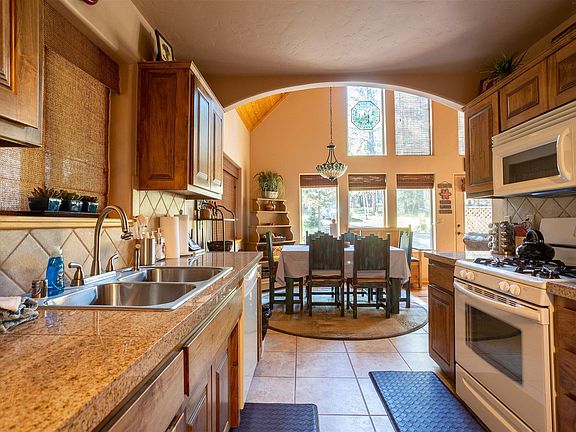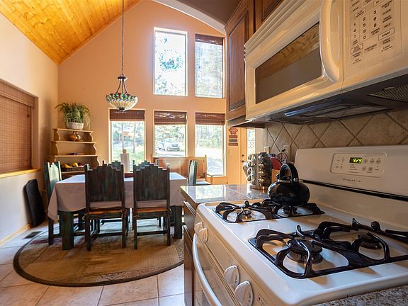 Kicked up! This chalet in the woods is the perfect mountain retreat. The 2007 Tom Miller Build has 3 bedrooms/3 bath on .64 acres with a green belt open space behind. There are two master suites , one on each level. The open floor plan is great for entertaining 2 or a crowd. Soaring tongue and groove ceiling tops off the living space and is anchored by a stacked stone gas log fireplace. No need to worry about chopping firewood or carrying in logs to this house! Much attention to detail was given by Miller in this build. Even the handrail is finished with pegs so that no nails or screws are visible. The spacious living area flows out to a deck that wraps around on three sides. One side is covered so you can enjoy outdoor living even if it is raining or snowing. This deck space is perfect for grilling, dining or enjoying the corner hot tub flanked by a privacy wall. This home is being sold fully furnished and accessorized. Just carry in your suitcase and relax in this beautiful Rocky Mountain getaway.